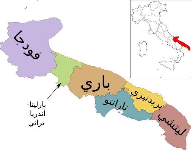 | Keywords: Map of region of Apulia, Italy, with provinces-ar.svg PUG Arabic own Rafy 2010-08-04 100px Blank100px Deutsch100px Ελληνικά100px Español100px Français100px Italiano100px ქართული100px Русский Valid SVG Inkscape Translation possible AttribSVG Map of region of Apulia Italy svg Vonvikken AttribSVG Italy map with regions svg Helix84 Vonvikken Maps of Apulia | ||||
