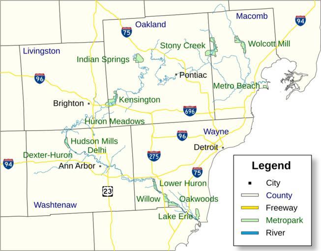 Keywords: Map US MI Huron-Clinton Metroparks.svg Huron-Clinton Metroparks locations in the metropolitan Detroit area southeastern Michigan Self-made using OpenJUMP with http //www mcgi state mi us/mgdl/ rel ext action sext State of Michigan GIS and Inkscape Bamyers99 2011-02-03 Cc-zero Huron-Clinton Metroparks 01 SVG maps of Michigan |