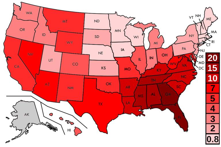 | Keywords: Map of US Murder Rate in 1940.svg en Map of US murder rate in 1940 http //www cdc gov/nchs/data/vsus/vsrates1940_60 pdf Data pgs 661 662 2016-04-01 own Delphi234 other versions Data wikitable sortable State 1940 1941 1942 1943 1944 1945 1946 1947 1948 1949 1950 1951 1952 1953 1954 1955 1956 1957 1958 1959 1960 - Alabama 16 7 14 7 13 3 11 0 11 9 12 5 14 8 15 9 15 8 14 3 14 1 11 6 13 2 12 3 12 4 12 9 11 6 11 5 11 4 10 2 10 5 - Alaska 9 4 8 1 7 4 9 8 13 8 15 5 10 8 6 9 6 3 7 0 8 1 9 8 8 2 9 8 4 0 9 3 - Arizona 9 4 6 9 7 6 6 9 5 4 8 2 6 2 5 4 6 4 5 7 5 7 5 9 8 4 6 0 7 2 7 8 5 8 7 7 6 3 6 6 6 8 - Arkansas 10 3 10 2 9 3 8 9 7 6 7 5 10 6 8 4 7 9 7 9 7 8 7 6 7 0 6 6 7 3 7 0 6 6 6 9 7 0 7 5 7 4 - California 5 0 4 5 4 7 4 3 5 0 5 5 5 6 6 0 4 8 4 7 4 4 3 7 4 3 4 0 3 8 3 4 3 9 3 8 3 8 3 7 4 5 - Colorado 4 6 2 4 3 8 4 9 3 4 4 9 5 1 4 4 4 6 4 9 3 3 2 6 3 2 4 5 3 3 4 2 3 1 2 4 4 5 4 7 3 9 - Connecticut 1 9 2 1 2 5 1 7 1 9 1 6 1 8 1 9 1 7 1 8 1 4 2 0 1 8 1 5 1 2 1 3 2 2 1 6 1 6 1 5 2 0 - Delaware 4 5 8 0 6 1 3 5 6 7 5 2 8 4 4 6 5 8 7 9 7 2 5 4 6 2 5 4 5 2 2 6 8 3 6 6 3 0 4 8 5 4 - Florida 21 7 19 0 17 6 14 8 12 4 14 8 16 2 14 8 14 9 11 8 13 1 10 7 10 9 10 4 9 8 10 4 10 5 9 5 10 4 10 6 9 2 - Georgia 20 5 20 7 16 6 14 2 14 8 16 1 17 9 15 9 16 8 12 8 14 8 13 3 14 3 13 2 13 5 11 4 12 2 11 0 10 4 11 0 10 9 - Hawaii 4 7 3 9 4 5 4 3 3 8 4 4 3 7 3 8 5 6 3 9 2 4 2 7 5 6 3 9 4 0 4 6 1 8 3 6 3 3 2 9 3 5 - Idaho 3 4 2 8 2 9 1 8 1 3 2 8 4 3 3 3 3 6 2 1 1 5 2 9 2 2 4 2 2 2 2 8 2 1 2 2 1 5 2 3 1 5 - Illinois 4 7 4 7 4 6 4 0 4 1 4 8 5 8 4 9 5 6 4 9 4 8 4 3 4 6 4 5 4 0 4 7 4 5 4 7 4 8 4 3 4 7 - Indiana 3 3 3 0 3 2 2 8 2 8 4 1 4 0 3 8 4 2 3 1 3 6 3 9 3 9 3 0 3 2 3 1 3 4 3 1 2 9 3 1 3 0 - Iowa 1 4 1 3 1 2 1 0 1 7 1 6 1 9 1 9 1 5 0 9 1 3 1 5 1 5 1 1 1 0 1 2 1 0 1 0 1 3 1 2 1 0 - Kansas 2 2 3 5 3 1 2 8 3 5 3 2 2 9 3 7 3 3 2 4 3 4 2 5 3 1 2 6 3 1 2 4 2 6 2 9 2 6 2 5 2 9 - Kentucky 14 3 14 3 11 0 8 1 9 1 10 4 11 2 10 5 11 2 8 8 8 6 7 7 8 6 7 3 7 2 6 9 6 0 6 7 6 5 7 3 6 1 - Louisiana 12 2 10 7 10 8 7 9 8 9 10 1 10 3 10 2 9 2 9 1 9 4 8 7 9 5 7 7 8 9 7 2 7 5 7 7 7 7 8 3 8 3 - Maine 1 5 1 1 1 7 1 7 1 5 0 9 1 4 1 3 1 7 1 7 1 6 2 8 1 0 1 4 1 6 1 2 1 1 1 0 1 6 1 5 1 8 - Maryland 8 0 7 5 8 9 7 7 7 7 7 3 8 0 7 6 7 9 6 5 6 3 5 8 5 7 5 2 6 0 5 4 5 0 5 7 5 6 4 8 5 7 - Massachusetts 1 5 1 3 1 3 1 0 1 4 1 5 1 4 1 7 1 4 1 1 1 3 1 0 1 0 1 1 1 0 1 1 1 0 1 2 0 9 1 0 1 3 - Michigan 3 0 3 2 3 2 3 3 3 2 3 7 3 3 3 8 3 4 3 5 3 9 3 7 3 3 3 4 3 2 3 3 2 9 3 0 2 8 3 2 3 6 - Minnesota 1 2 1 7 1 7 1 2 1 4 1 9 1 6 1 2 1 9 1 1 1 2 1 3 1 3 1 5 1 0 1 1 1 0 1 4 1 2 1 2 1 3 - Mississippi 17 3 18 7 18 0 14 1 14 2 12 2 17 6 15 0 15 9 17 0 13 8 12 3 13 0 10 4 13 5 11 2 9 8 8 9 9 8 10 5 8 0 - Missouri 5 5 5 1 5 6 5 1 4 2 6 0 7 6 6 0 6 3 5 7 5 9 5 0 6 2 5 6 5 4 5 4 5 7 5 3 5 3 5 8 4 6 - Montana 5 2 3 3 3 3 3 3 2 8 4 0 4 3 2 6 2 8 3 7 3 9 2 2 3 0 3 6 4 5 3 0 5 0 3 0 2 7 4 0 3 9 - Nebraska 1 0 2 3 1 8 2 4 1 3 1 2 2 1 2 2 2 6 1 8 2 9 1 0 1 7 2 0 2 3 1 8 1 9 1 9 2 9 2 8 1 9 - Nevada 9 1 10 8 10 9 11 9 5 2 8 7 7 0 11 4 12 2 10 2 9 4 9 5 7 2 5 6 10 3 8 4 4 4 8 1 7 4 7 5 8 1 - New Hampshire 1 4 0 2 0 2 0 9 1 1 0 7 0 8 0 6 1 0 1 5 1 3 0 6 1 5 0 9 0 5 1 1 0 7 0 9 0 3 2 2 1 0 - New Jersey 2 3 2 6 2 5 2 3 2 1 3 1 2 4 3 1 2 6 3 0 2 5 2 6 2 6 2 6 2 3 2 2 2 0 2 2 2 4 2 5 2 6 - New Mexico 6 4 6 5 6 6 3 0 6 6 4 5 6 6 8 1 7 1 7 0 6 2 5 6 5 9 4 2 5 1 4 3 4 5 6 5 5 4 5 5 6 1 - New York 2 9 2 9 3 0 2 5 2 6 3 1 3 6 3 4 3 0 2 9 2 7 2 5 2 9 2 8 2 8 2 7 2 5 2 5 2 8 3 2 3 3 - North Carolina 11 1 10 8 10 3 7 5 8 7 8 9 10 1 11 7 11 1 9 6 9 4 8 2 9 6 8 8 8 9 7 9 7 2 8 4 8 3 9 4 9 2 - North Dakota 1 4 2 4 1 4 0 5 0 9 0 9 1 4 0 8 0 9 0 7 0 5 0 5 0 8 1 1 0 5 0 8 0 7 0 5 0 8 0 6 1 4 - Ohio 4 6 4 3 4 6 4 5 3 8 5 0 5 2 4 9 4 6 4 4 4 1 3 8 4 0 3 9 3 4 3 1 4 0 3 7 3 3 3 6 3 5 - Oklahoma 6 5 6 5 6 2 5 0 4 7 6 5 6 1 6 8 5 8 5 9 4 4 4 9 5 4 5 2 4 8 4 3 4 5 4 3 5 0 5 2 5 8 - Oregon 3 4 3 2 3 1 3 1 3 7 4 5 4 1 2 8 3 8 2 7 3 2 1 7 3 2 3 0 2 0 2 9 2 4 2 9 2 2 2 0 2 5 - Pennsylvania 2 9 2 5 2 7 2 5 2 2 2 8 3 1 3 1 3 0 2 6 2 7 2 8 2 7 2 8 2 9 2 3 2 6 2 3 2 5 2 6 2 7 - Rhode Island 1 4 0 8 1 2 1 4 0 6 1 0 1 4 1 4 2 5 0 5 1 5 0 9 1 5 0 6 1 3 1 7 1 3 1 2 0 8 1 6 1 4 - South Carolina 13 4 13 5 10 7 10 4 10 2 10 7 13 0 15 0 12 8 12 3 10 8 10 4 10 9 10 1 9 9 10 5 10 5 9 4 8 0 8 7 10 0 - South Dakota 2 2 0 8 0 8 1 4 1 6 1 9 1 0 1 2 2 0 2 8 1 1 0 9 2 3 1 1 1 5 1 8 1 8 1 5 0 9 1 8 2 9 - Tennessee 16 7 14 5 12 3 9 3 10 1 10 8 12 8 11 9 11 5 9 9 9 1 9 0 9 0 7 9 8 9 7 8 8 5 8 0 8 2 6 7 7 6 - Texas 9 8 9 2 10 0 8 8 8 1 9 8 11 3 10 7 10 2 10 1 9 5 9 8 9 6 9 1 8 6 7 6 8 2 7 3 7 9 7 5 7 6 - Utah 2 9 1 8 2 6 3 5 1 8 3 6 2 2 1 9 2 0 2 2 1 5 1 1 1 8 2 2 2 1 2 8 1 6 1 3 1 4 1 3 2 1 - Vermont 0 8 2 3 0 9 0 6 0 3 2 9 1 8 1 4 0 8 0 5 0 5 0 5 0 5 0 3 1 6 0 5 0 3 1 1 1 8 0 8 - Virginia 10 6 10 1 11 0 8 7 7 5 7 7 10 7 8 3 9 4 9 2 9 1 8 4 7 5 7 8 8 8 8 1 7 4 7 5 7 7 7 4 7 2 - Washington 3 6 2 4 2 8 2 6 3 8 3 5 3 6 3 4 3 0 3 4 2 7 2 4 2 7 3 0 3 4 3 3 2 8 2 4 2 3 2 4 2 6 - West Virginia 8 5 7 4 6 9 4 3 4 6 5 8 7 3 7 0 8 2 7 1 8 0 5 0 5 5 5 7 4 9 4 3 5 2 4 3 5 3 4 2 3 6 - Wisconsin 1 3 1 3 1 7 1 1 0 9 1 6 0 9 1 4 0 9 1 3 1 1 1 2 1 6 1 2 1 1 1 1 1 1 1 3 1 1 1 4 1 5 - Wyoming 6 0 4 0 4 4 6 9 3 7 6 3 3 9 5 0 4 5 4 7 1 4 3 1 5 1 3 1 2 4 3 3 2 6 3 2 2 9 4 1 5 8 - Washington DC 13 7 10 3 10 7 9 1 6 6 6 8 12 9 8 4 10 2 11 0 9 8 11 0 9 4 10 0 9 9 7 6 8 8 8 9 11 4 9 9 11 5 - class sortbottom United States 6 3 6 0 5 9 5 1 5 0 5 7 6 4 6 1 5 9 5 4 5 3 4 9 5 2 4 8 4 8 4 5 4 6 4 5 4 5 4 6 4 7 cc-zero Maps of crime statistics for the United States |