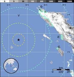Keywords: Mapa terremoto de Indonesia de 2012.png es El terremoto del océano Índico de 2012 fue un terremoto de magnitud 8 6 grados en la escala de magnitud de momento que sacudió a Indonesia Tailandia Malasia Sri Lanka India Bangladesh Vietnam Maldivas y Singapur Además obligó a emitir una advertencia de tsunami para 20 países debido a la magnitud del sismo y una posterior réplica de 8 2 grados en la escala de magnitud de momento 2012-04-11 http //earthquake usgs gov/earthquakes/pager/events/us/c000905e/exposure png USGS PD-USGov Uploaded with UploadWizard Earthquake maps |