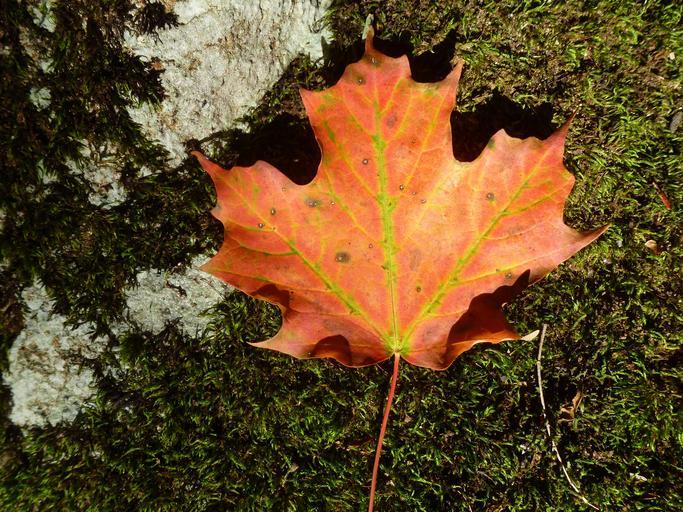 Keywords: maple leaf fall autumn orange moss forest pickering ontario canada