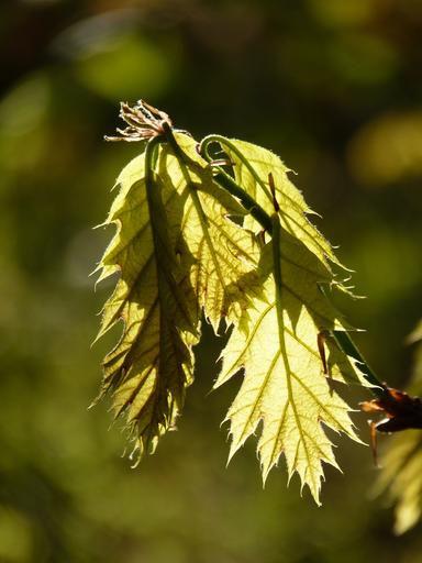 Keywords: maple leaf tree leaves forest nature green leaves branch maple leaves back light spring new tender shine through