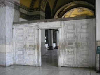 Keywords: Marble door Hagia Sophia 2007 003.jpg The Marble Door inside the Hagia Sophia It was used by the participants in synods they entered and left the meeting chamber through this door Own 2007-07 Gryffindor Marble Door Hagia Sophia