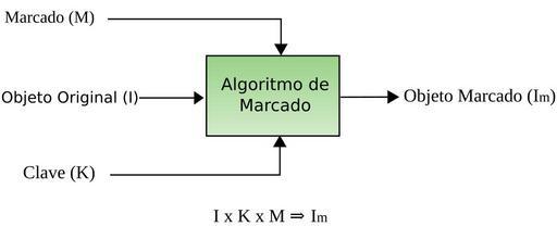| Keywords: Marcado watermarking.svg Inkscape-hand validSVG La imagen explica el proceso de marcado de un objeto digital mediante un diagrama Es una conversión de la imagen Marcado_watermarking jpg creada por Albertogmdp al formato svg Cryptography diagrams |