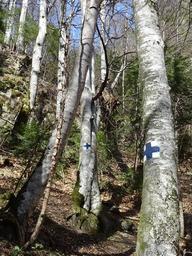 Keywords: Marcaj-turistic-1.jpg en Hiking trail markings in Romania 2016-04-02 own Whitepixels other versions 45 577433 25 569504 Valea Lamba east side of Postavaru cc-zero Hiking and footpath signs in Romania