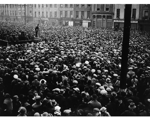 | Keywords: michael collins michaelcollins cork mass meeting massmeeting free state freestate demonstration sean mckeon seanmckeon john mckeon johnmckeon seán maceoin seánmaceoin ireland munster motors burchill's burchills w.v. morris wvmorris tract & book society tractbooksociety stationery school books schoolbooks maps magazines perrot w.d. hogan wdhogan hogan collection hogancollection monday 13th march 1922 1920s twenties hats grand parade grandparade big fellow bigfellow crowd national library of ireland nationallibraryofireland location identified locationidentified blackandwhite monochrome people outdoor black and white Michael Collins addressing a mass meeting in Cork, described by photographer W.D. Hogan as a "Free State demonstration". Sean McKeon is also somewhere on the platform with Collins. Thanks to blackpoolbeach and Anthony Cronin for letting us know that this photo was taken at a jam-packed Grand Parade. Date: Monday, 13 March 1922 NLI Ref.: HOG140 Michael Collins addressing a mass meeting in Cork, described by photographer W.D. Hogan as a "Free State demonstration". Sean McKeon is also somewhere on the platform with Collins. Thanks to blackpoolbeach and Anthony Cronin for letting us know that this photo was taken at a jam-packed Grand Parade. Date: Monday, 13 March 1922 NLI Ref.: HOG140 |