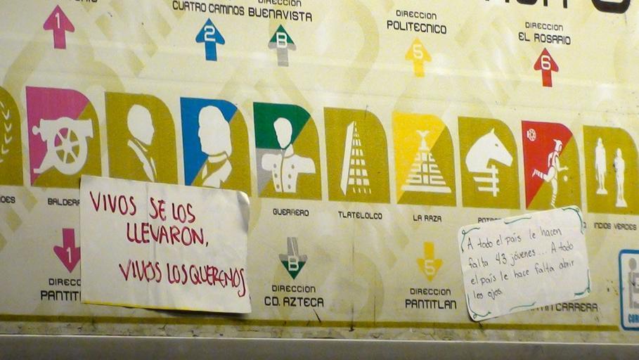 | Keywords: Marcha “Júrame que no te rindes” 02.jpg es Estampas en el Metro de la Ciudad de México con mensajes en pro de la marcha Júrame que no te rindes por los 43 normalistas desaparecidos en Iguala Guerrero 2014-11-20 16 38 26 own Lameirasb other versions cc-zero Template Wiki Borregos file donated Fall 2013 Ayotzinapa protests Nov 20 Mexico City project Lameirasb Protests related to the forced kidnapped of 43 students in Ayotzinapa Acción Global por Ayotzinapa Uploaded with UploadWizard | ||||
