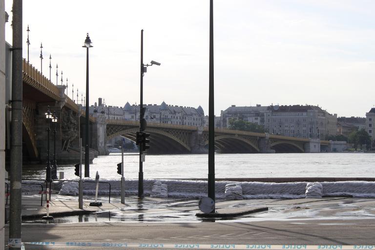 Keywords: Margaret Bridge.JPG title Margaret Bridge at the peak level of the water A Margit-híd a tetőzéskor own photo by Szilas 2013-06-10 07 17 42 Szilas Commonist Flood in Budapest 2013