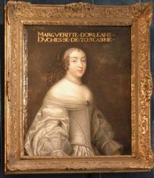Keywords: Marguerite Louise d'Orléans, future Grand Duchess of Tuscany from the studio of the Beaubrun brothers.jpg Unknown; Charles Beaubrun 1604-1692 Henri Beaubrun 1603-1677 / Beaubrun studio of the brothers Anonyme ; Charles Beaubrun 1604-1692 Henri Beaubrun 1603-1677 / Beaubrun atelier des frères Marguerite Louise de Bourbon-Orléans Großherzogin von Toskana 1645-1721 Marguerite Louise d'Orléans Grand Duchess of Tuscany 1645-1721 century 17 Oil on canvas cm 73 60 Institution Versailles sailko 000PE005289 GFDL Cc-by-sa-3 0-migrated cc-by-2 5 I Sailko other versions <gallery>Marguerite-Louise d'Orleans jpg</gallery> PD-old-100 17th-century unidentified painters from France 1670 Charles Beaubrun 17th-century portrait paintings in the Musée national du Château de Versailles 1670 Marguerite Louise d'Orléans 1670 17th-century portrait paintings from France not categorised by year F 17th-century oil portraits of standing women at half length 1670 Brooches in art Décolleté in art Female hair fashion in art Females with clothing with pearls in art 1670 Females with hair with pearl jewellery in art 1670 Females with pearl necklaces in art 1670 Females with white satin dresses in art 1670 Golden painting frames Portrait paintings of children and grandchildren of France Portrait paintings with inscriptions 1670 Three-quarter view portrait paintings of women facing right White clothing in art female
