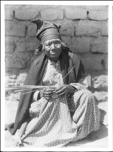 Keywords: Maria Antonia, a Coahuilla Indian basket maker, at work, California, ca.1899 (CHS-4748).jpg en <br> Maria Antonia a Coahuilla Indian basket maker at work California ca 1899 Photograph of Maria Antonia a Coahuilla Indian basket maker at work California ca 1899 She squats in front of an adobe brick wall with a partially completed basket with her hands She wears a long-sleeved shirt a long skirt a shawl around her shoulders and a handkerchief around her head She has short white hair Call number CHS-4748 Photographer James George Wharton Filename CHS-4748 Coverage date circa 1899 Part of collection California Historical Society Collection 1860-1960 Format glass plate negatives Type images Part of subcollection Title Insurance and Trust and C C Pierce Photography Collection 1860-1960 Repository name USC Libraries Special Collections Accession number 4748 Microfiche number 1-172-; 1-70-22 Archival file chs_Volume98/CHS-4748 tiff Repository address Doheny Memorial Library Los Angeles CA 90089-0189 Geographic subject country USA Format aacr2 3 photographs glass photonegative photoprints b w ; 22 x 17 cm 26 x 21 cm Rights Digitally reproduced by the USC Digital Library; From the California Historical Society Collection at the University of Southern California Subject adlf tribal areas Project USC Repository email specol usc edu Identifying number unidentified no James-2013 Contributing entity California Historical Society Date created circa 1899 Publisher of the digital version University of Southern California Libraries Format aat photographic prints; photographs Geographic subject state California Legacy record ID chs-m17057; USC-1-1-1-13550; USC-1-1-1-13920 Access conditions Send requests to address or e-mail given Phone 213 821-2366; fax 213 740-2343 Subject file heading Indians -- Mission -- Cahuilla; Portraits -- A Subject lcsh Indians of North America; Cahuilla Indians Subject Mission Indians; Cahuilla Indians; Antonia Maria; Coahuilla Indians; Mission Indians -- Basketry circa 1899 date created James George Wharton http //digitallibrary usc edu/cdm/ref/collection/p15799coll65/id/17070 PD-old-70-1923 Images from USC Digital Library uploaded by Fæ California Historical Society Collection 1860-1960 Glass plate negatives Cahuilla Cahuilla baskets Photographs by George Wharton James |