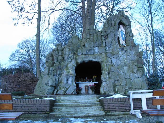 Keywords: Maria grot Noordeinde.JPG nl Mariagrot / Lourdes grot achter de Rooms Katholieke kerk op het Noordeinde gemeente Nieuwkoop own Compro 2009-12-25 PD Lourdes Grottoes in the Netherlands Noordeinde Sint-Johannes de Doperkerk Noordeinde