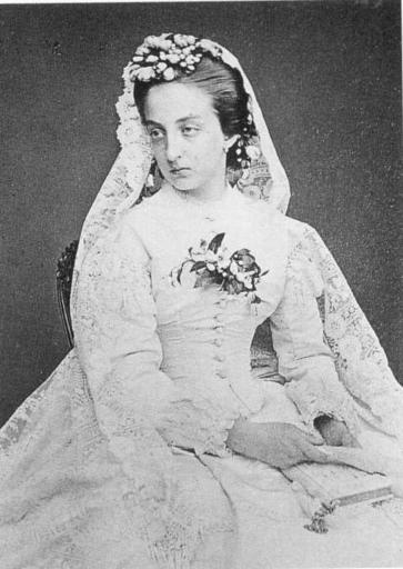 | Keywords: Marie-Isabelle Comtesse de Paris.jpg  Portrait de Marie-Isabelle comtesse de Paris 1848-1919 le jour de ses noces avec Philippe VII http //www royaltyguide nl/images-families/bourbon/bborleans2/1848 20M Isabel-01 jpg 1864 author PD-old Unknown photographer XIX century 1864 Princess Marie Isabelle of Orléans 1864 1864 portrait photographs Fashion in 1864 19th-century portrait photographs of sitting women at three-quarter length 1864 Court uniforms and dress of France Portraits with fans 1864 |