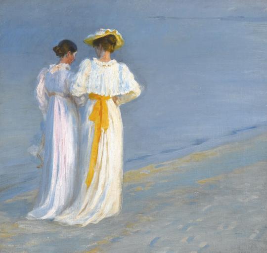 Keywords: Marie Krøyer and Anna Ancher on the Beach at Skagen by Peder Severin Krøyer.jpg Artwork title Anna Ancher og Marie Krøyer på stranden ved Skagen Anna Ancher and Marie Krøyer on the beach at Skagen Creator Peder Severin Krøyer other date s 1890 oil canvas cm 45 47 object history Queen Margherita of Italy 1851-1926; probably acquired at the 1905 Wiesbaden exhibition <br/>Princess Maria Beatrice of Savoy great-granddaughter of the above; her sale Christie's South Kensington London 1 April 2012 lot 42 <br/>Purchased at the above sale by the late owner exhibition history Wiesbaden Kunstsalon Banger 1905 no 38<br/>Berlin Kunstsalon Keller und Reiner 1905 no 516 http //www sothebys com/de/auctions/ecatalogue/2012/c19th-european-paintings-inc-greek-l12102/lot 22 html Sotheby's London 20 November 2012 lot 22 <gallery> Kroyer_summerevening_southern_beach jpg a similar painting by P S Krøyer Skagens Museum </gallery> PD-old-100-1923 DEFAULTSORT Kroyer P S ; Anna Ancher and Marie Krøyer; Sotheby's 2012 Summer evening at the South beach of Skagen by Peder Severin Krøyer Anna Ancher Images from Sotheby's P S Krøyer's paintings of Marie 19th-century paintings of standing women at full length |