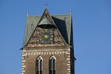 Keywords: marienkirche wismar tower clock st mary church germany time steeple spire exterior facade construction structure