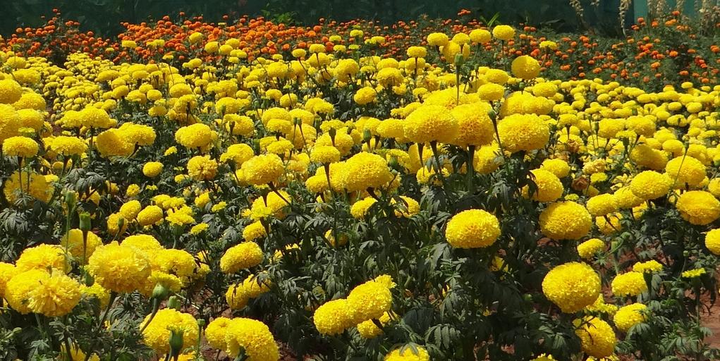 Keywords: marigold yellow flower floral flora field horticulture plants india