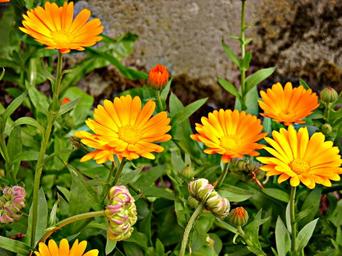 Keywords: marigolds flowers nature yellow orange colors green bloom seasons colorful