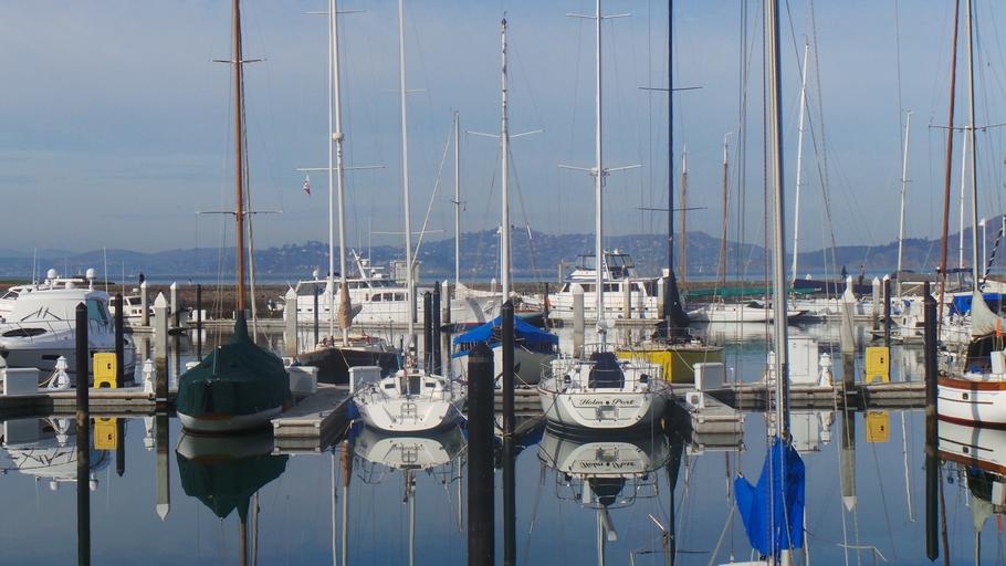 Keywords: marina sailboats vessels port calm ships water reflection lifestyle recreation yachting boats yachts marine leisure hazy nautical