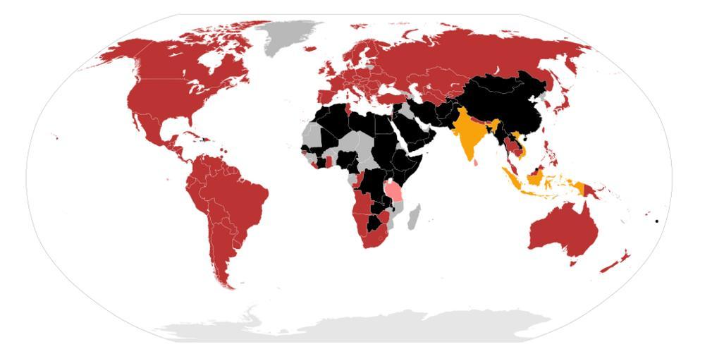 | Keywords: Marital rape criminalized map.svg A map of the legal status of marital rape by country legend BB3333 Marital rape is criminalized FF8888 Marital rape is criminalized only if the couple is legally separated F8A20C Marital rape is a form of non-criminal domestic violence 000000 Marital rape is known not to be criminalized I Carwil James created this work based on BlankMap-World6 svg 23 52 15 February 2010 UTC Carwil talk Carwil Original upload log en wikipedia Stefan4 CommonsHelper en wikipedia MaritalRapeCriminalizedMap svg 2013-03-24 18 23 Carwil 940×477× 1634995 bytes <nowiki>A handful of new countries added or changed due to new information or recently passed laws Mozambique is now grayed due to conflicting information </nowiki> 2013-02-03 13 26 Carwil 940×477× 1634727 bytes <nowiki>Some country changes mostly additions but Lithuania is greyed due to conflicting sources </nowiki> 2013-01-24 16 04 Carwil 940×477× 1634404 bytes <nowiki>Various updates of countries; all sourced on Marital Rape on English Wikipedia </nowiki> 2012-03-25 16 39 Carwil 940×477× 1634008 bytes <nowiki>Additional countries added to various categories per new version of Marital rape article </nowiki> 2012-01-29 16 46 Carwil 940×477× 1633945 bytes <nowiki>Added a number of countries Now four categories Criminalized red BB3333 Criminal only for legally separated spouses pink FF8888 Civil form of domestic violence orange F8A20C Not criminalized black 000000 No or conflicting info remains g</nowiki> 2011-03-09 23 24 Carwil 940×477× 1633418 bytes <nowiki>Adds six more countries that do not criminalize </nowiki> 2011-03-08 15 37 Carwil 940×477× 1633331 bytes <nowiki>Added a number of countries in both criminalize and do not criminalize categories </nowiki> 2011-03-07 23 16 Carwil 940×477× 1633041 bytes <nowiki>Update adds countries and adds a third color lighter red FF8888 to indicate countries where marital rape is only criminalized in cases of legal separation Sample markup for a caption BB3333 Marital rape is criminalized FF8888 M</nowiki> 2010-07-22 19 33 Carwil 940×477× 1631800 bytes <nowiki>Update adds countries subtracts Pakistan and Honduras per new information and adds a second color black 000000 to indicate countries where marital rape is known not be criminalized </nowiki> 2010-02-23 00 26 Carwil 940×477× 1631321 bytes <nowiki>Further sources and countries added </nowiki> 2010-02-15 23 52 Carwil 940×477× 1631087 bytes <nowiki> A map of I Carwil James created this work based on BlankMap-World6 svg ~~~~~ ~~~ </nowiki> Rape statistics Marriage Violence against women Law-related maps SVG maps of the world Maps needing South Sudan political boundaries |