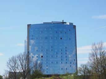 Keywords: maritime hotel ulm home mirroring facade building architecture danube reflection river water