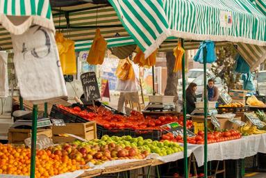 Keywords: market sale peddling business street sell vegetables fruit