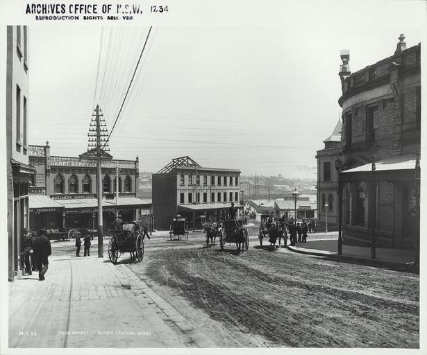 Keywords: archives state records nsw staterecordsnsw newsouthwales blackandwhite sydney market street marketstreet pyrmont bridge pyrmontbridge people horse and cart horseandcart sussex street outdoor road photo border black and white View from Market Street to the site of Pyrmont Bridge, Sydney Dated: 14/11/1899 Digital ID: 4481_a026_000889 Rights: www.records.nsw.gov.au/about-us/rights-and-permissions We'd love to hear from you if you use our photos. Many other photos in our collection are available to view and browse on our website using Photo Investigator. View from Market Street to the site of Pyrmont Bridge, Sydney Dated: 14/11/1899 Digital ID: 4481_a026_000889 Rights: www.records.nsw.gov.au/about-us/rights-and-permissions We'd love to hear from you if you use our photos. Many other photos in our collection are available to view and browse on our website using Photo Investigator. |