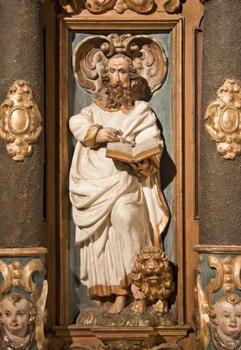 Keywords: Markus i Nikolai kyrka.jpg sv Evangelisten Markus på altaruppsatsen av Markus Hebel i Sankt Nikolai kyrka i Örebro 2011-08-08 own Sankt Nikolai kyrka i Örebro cc-zero se BBR a 21300000003502 Uploaded with UploadWizard Reredos in Sankt Nicolai kyrka Örebro Statues of Saint Mark in Sweden Taken with Canon EOS 40D 2011 in Örebro August 2011 in Sweden Churches in Sweden photographed in 2011 Photographs taken on 2011-08-08