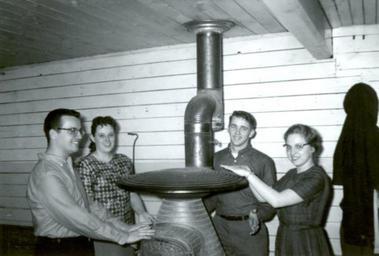 Keywords: marlboro youth center marlboroyouthcenter wood stove woodstove bill lauterbach billlauterbach doris lauterbach dorislauterbach sherman kauffman shermankauffman betty kauffman bettykauffman mennonite board of missions mennonite mission network voluntary service alberta marlboro mennoniteboardofmissionsmennonitemissionnetworkvoluntaryservicealbertamarlboro people groupshot Caption: April, 1964. Marlboro, Alberta. Marlboro VS unit (Bill and Doris Lauterbach, Sherman and Betty Kauffman) warming up around the old wood-burning stove in the Marlboro Youth Center. Citation: Mennonite Board of Missions. Photographs. Marlboro, Alberta Voluntary Service. 1963. IV-10-7.2 Box 1 Folder 20 Photo 11. Mennonite Church USA Archives - Goshen. Goshen, Indiana. Caption: April, 1964. Marlboro, Alberta. Marlboro VS unit (Bill and Doris Lauterbach, Sherman and Betty Kauffman) warming up around the old wood-burning stove in the Marlboro Youth Center. Citation: Mennonite Board of Missions. Photographs. Marlboro, Alberta Voluntary Service. 1963. IV-10-7.2 Box 1 Folder 20 Photo 11. Mennonite Church USA Archives - Goshen. Goshen, Indiana. |