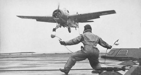 Keywords: Marlet landing HMS Illustrious NAN2-1-44.jpg A Royal Navy Martlet Mk II fighter Grumman F4F-4 Wildcat of No 806 Naval Air Squadron Fleet Air Arm landing on the aircraft carrier HMS Indomitable 92 during the convoy battles to supply Malta in August 1942 U S Navy Naval Aviation News http //www history navy mil/nan/backissues/1940s/1944/1Feb44 pdf 15 January 1944 p 21 1942-08 USN PD-USGov-Military-Navy Grumman Martlet HMS Indomitable 92 Aircraft carrier landings Indomitable Landing Signal Officer 806 Naval Air Squadron Malta convoys