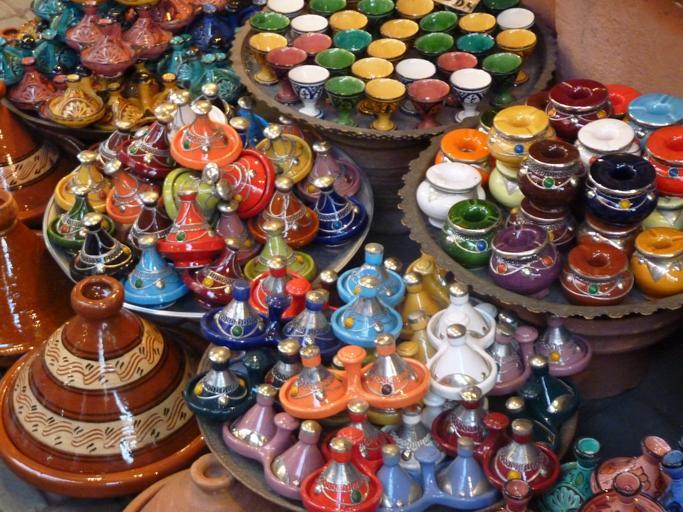 Keywords: marrakech morocco tagine pottery souk ceramic bazaar colorful