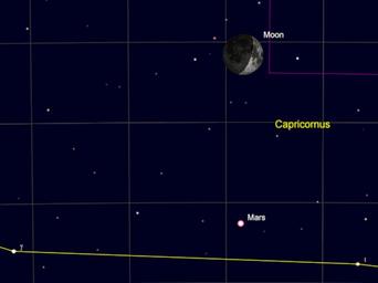 Keywords: The waxing crescent Moon passes north of Mars at 09:56 UT, 5th December 2016. news