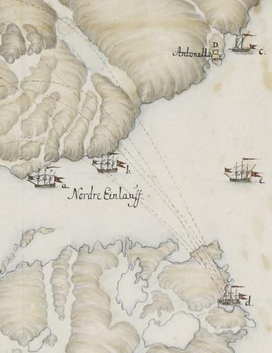 | Keywords: MarstrandShips3.jpg en Danish naval vessels attacking the northern inlet to Marstrand harbour Sweden and outwork Antonetta in 1719 The vessels are gunbarges Prince Georg a and Crown Prince b galley Ulysses c and the firing mortar barge Lange Maren d sv Danska örlogsfartyg anfaller norra inloppet till hamnen i Marstrand och utanverket Antonetta 1719 Fartygen är skottpråmarna Prins Georg a och Kronprinsen b galären Ulysses c samt den skjutande mörsarpråmen Lange Maren d The Royal Library Copenhagen detail from file CarlstenochMarstrand1719 jpg Lerche 1719 Line art of sailing ships Naval ships of Denmark 1700-1799 Maps of Marstrand Karlstens fästning PD-old-100 |