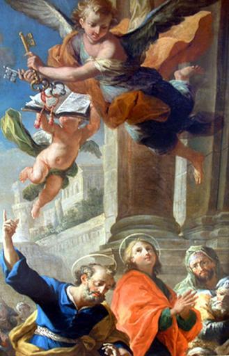 | Keywords: Martino Altomonte.jpg artwork Detail Oil on canvas High altarpiece of St Peter's Church Vienna http //www peterskirche at/kirche/hochaltar htm date not given in source Creator Martino Altomonte PD-old-100 Martino Altomonte St Peter Healing the Sick with His Shadow Keys in art 17th-century paintings of angels with humans Angels with books Angels in the air Details of paintings without complete work Interior of St Peter's Church Vienna 17th-century religious paintings in Austria | ||||