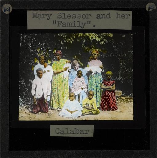| Keywords: "Mary Slessor and her family", Calabar, late 19th century (imp-cswc-GB-237-CSWC47-LS2-019).jpg en <br> Mary Slessor and her family Calabar late 19th century Mary Slessor pictured with a group mainly of children of varying age One small child sits on Mary Slessor's knee in the centre of the picture Some of the children are dressed in brightly coloured clothes ; Mary Slessor was a Scottish missionary known for her work in Africa where she successfully fought against a number of issues including the killing of twins at infancy Mary adopted many abandoned children most notably twin babies and the children of slaves Photographer Unknown Subject personal name Slessor Mary Mitchell 1848-1915 Filename imp-cswc-GB-237-CSWC47-LS2-019 tif Coverage date before 1915 Part of collection International Mission Photography Archive ca 1860-ca 1960 Type images Part of subcollection Photographs from the Centre for the Study of World Christianity University of Edinburgh U K ca 1900-ca 1940s Repository name Centre for the Study of World Christianity Archival file impaunpub_Volume7/1292 url Repository address The University of Edinburgh School of Divinity New College Mound Place Edinburgh EH1 2LX United Kingdom Geographic subject country Nigeria Format aacr2 1 lantern slide 8 x 8 cm Geographic subject continent Africa Rights Contact the repository for details Part of series Mary Slessor LS2 Repository email divinity-CSWC ed ac uk Subject lcsh Keyword Adopted children; Religion Date created circa 1880 Publisher of the digital version University of Southern California Libraries Subject aat genre group portraits Format aat lantern slides Legacy record ID impa-m68162 Access conditions http //www ed ac uk/schools-departments/divinity/research/centres/world-christianity/collections-resources File GB 237 CSWC47/LS2/19 1880 author http //digitallibrary usc edu/cdm/ref/collection/p15799coll123/id/64415 PD-old-70-1923 Magic lantern images Images from USC Digital Library uploaded by Fæ International Mission Photography Archive ca 1860-ca 1960 Calabar |