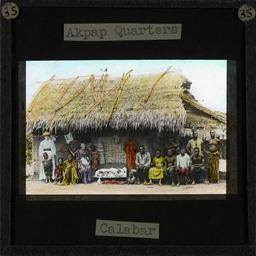 Keywords: Mary Slessor's House at Akpap, late 19th century (imp-cswc-GB-237-CSWC47-LS2-035).jpg en <br> Mary Slessor's House at Akpap late 19th century Akpap Quarters Image of Mary Slessor and a group of villagers gathered outside her living Quarters in the village of Akpap The house is windowless with mud walls and a thatched roof A basket of babies can be seen beside Mary Slessor ; Akpap Village in Calabar was home to Mary Slessor the Scottish Missionary for a number of years She lived in this basic accommodation until a house was built for her Photographer Unknown Subject personal name Slessor Mary Mitchell 1848-1915 Filename imp-cswc-GB-237-CSWC47-LS2-035 tif Coverage date circa 1880 Part of collection International Mission Photography Archive ca 1860-ca 1960 Type images Part of subcollection Photographs from the Centre for the Study of World Christianity University of Edinburgh U K ca 1900-ca 1940s Repository name Centre for the Study of World Christianity Archival file impaunpub_Volume7/1309 url Repository address The University of Edinburgh School of Divinity New College Mound Place Edinburgh EH1 2LX United Kingdom Geographic subject country Nigeria Format aacr2 1 lantern slide 8 x 8 cm Geographic subject continent Africa Rights Contact the repository for details Part of series Mary Slessor LS2 Repository email divinity-CSWC ed ac uk Subject lcsh Keyword Dwellings; Village communities Date created circa 1880 Publisher of the digital version University of Southern California Libraries Subject aat genre group portraits Format aat lantern slides Legacy record ID impa-m68179 Access conditions http //www ed ac uk/schools-departments/divinity/research/centres/world-christianity/collections-resources File GB 237 CSWC47/LS2/35 1880 author http //digitallibrary usc edu/cdm/ref/collection/p15799coll123/id/64431 PD-old-70-1923 Magic lantern images Images from USC Digital Library uploaded by Fæ International Mission Photography Archive ca 1860-ca 1960