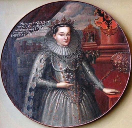 Keywords: Maryna Mniszchówna.JPG Tsarina Marina Mniszech in coronation robes Caryca Maryna Mniszchówna w stroju koronacyjnym Creator Szymon Boguszowicz ca 1606 oil canvas State Historical Museum Moscow Object history < 1613 commission Jerzy Mniszech and Jadwiga Tarło Laszki Murowane century 18 transfer Wiśniowiec Palace Own Martimar PD-Art PD-old-100 Paintings from Laszki Murowane Castle Marina Mniszech in portraits Round portraits of women |