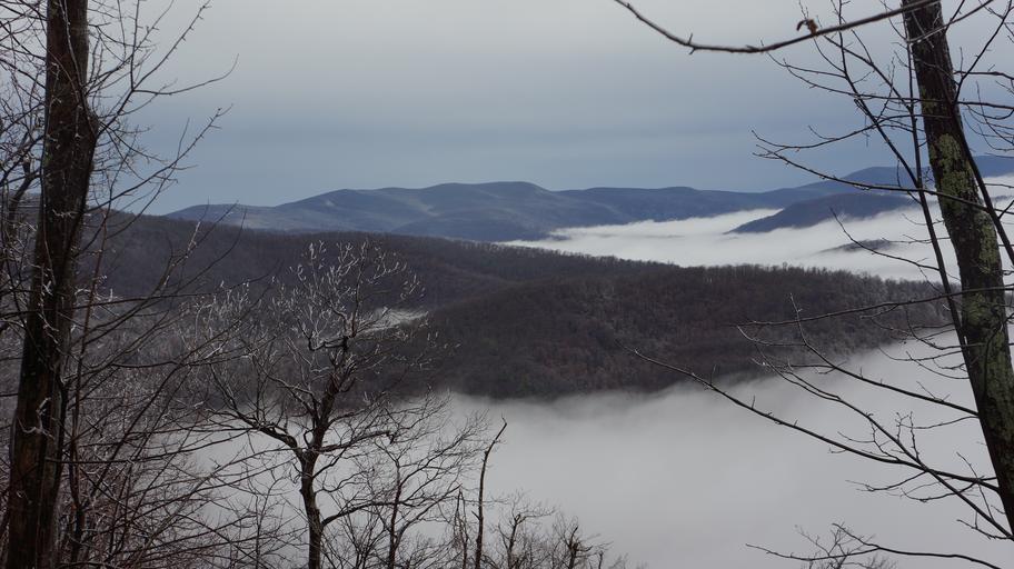 Keywords: Nature Mountain Trail National Park Trekking Hiking Skyline USA Hike Camping Campground Shenandoah Valley Sky Hawk hoarfrost Marys Rock Winter Fog