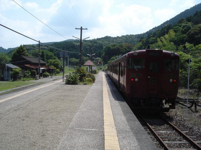 Keywords: MASAKI STATION 20080613.JPG zh 幸驛 台, 伊三郎/新平號 列車即將折返離站 own 席特曼 2008-06-13 Masaki Station Miyazaki Kiha 140 JR Kyushu