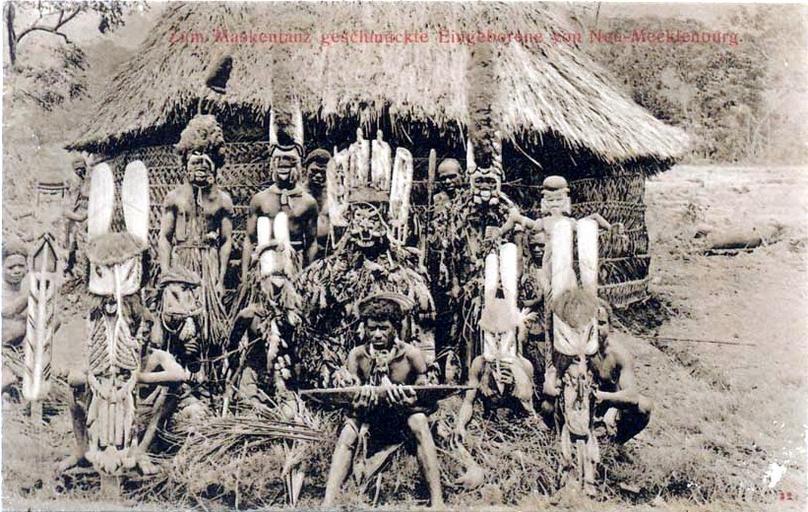 Keywords: Masked dancers, New Ireland (Neu-Mecklenburg).jpg en Early postcard addressed from Herbertshohe Deutsch Neu-Guinea to Sydney 190 Published by the Norddeutschen Lloyd shipping company http //www oceania-ethnographica com/mel149 html Published by the Norddeutschen Lloyd shipping company ~ 190 People of Papua New Guinea Postcards of Papua New Guinea New Ireland Province Postcards of dancers PD-old |