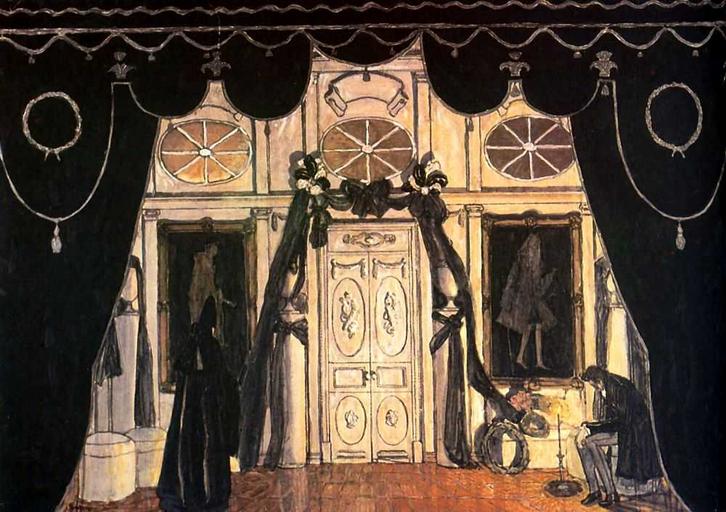 | View Original: | Masquerade by Golovin - 10th picture. Mourning hall (1917, Bakhrushin museum).jpg (1000x705) | |||