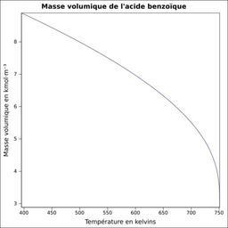 Keywords: Masse volumique acide benzoïque.svg fr Masse volumique calculée d'après <br/> Robert H Perry et Donald W Green Perry's Chemical Engineers' Handbook McGraw-Hill USA 1997 7e éd 2400 p ISBN 0-07-049841-5 p 2-94 own Epop 2010-06-27 Created with Gnumeric Density curves |