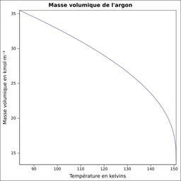 | Keywords: Masse volumique argon.svg  fr Masse volumique calculée d'après <br/> Robert H Perry et Donald W Green Perry's Chemical Engineers' Handbook McGraw-Hill USA 1997 7e éd 2400 p ISBN 0-07-049841-5 p 2-94 own Epop 2010-06-27 Created with Gnumeric Density curves  |