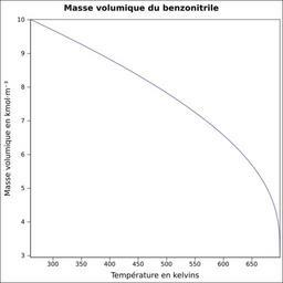 | Keywords: Masse volumique benzonitrile.svg fr Masse volumique calculée d'après <br/> Robert H Perry et Donald W Green Perry's Chemical Engineers' Handbook McGraw-Hill USA 1997 7e éd 2400 p ISBN 0-07-049841-5 p 2-94 own Epop 2010-06-27 Created with Gnumeric Density curves |