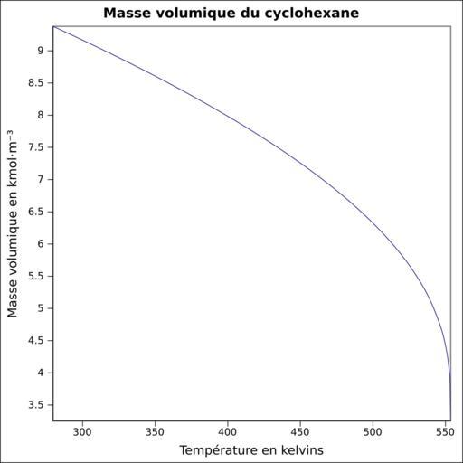 | Keywords: Masse volumique cyclohexane.svg  fr Masse volumique calculée d'après <br/> Robert H Perry et Donald W Green Perry's Chemical Engineers' Handbook McGraw-Hill USA 1997 7e éd 2400 p ISBN 0-07-049841-5 p 2-94 own Epop 2010-06-27 Created with Gnumeric Density curves  |