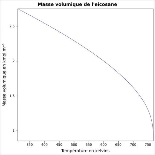 | Keywords: Masse volumique eicosane.svg fr Masse volumique calculée d'après <br/> Robert H Perry et Donald W Green Perry's Chemical Engineers' Handbook McGraw-Hill USA 1997 7e éd 2400 p ISBN 0-07-049841-5 p 2-94 own Epop 2010-06-27 Created with Gnumeric Density curves |