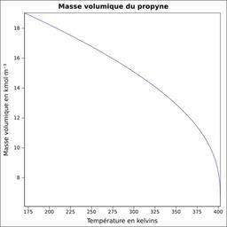 | Keywords: Masse volumique propyne.svg fr Masse volumique calculée d'après <br/> Robert H Perry et Donald W Green Perry's Chemical Engineers' Handbook McGraw-Hill USA 1997 7e éd 2400 p ISBN 0-07-049841-5 p 2-94 own Epop 2010-06-27 Created with Gnumeric Density curves |