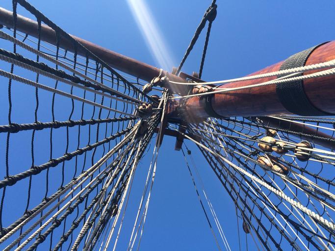 Keywords: mast crow's nest sailing ship blue sky ropes