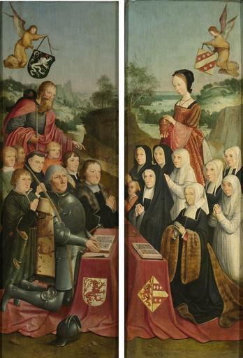 | Keywords: Master of Alkmaar two panels Rijksmuseum.jpg Artwork LangSwitch Two wings of a memorial tablet with eight male portraits and nine female portraits respectively accompanied by Saints James the Greater and Mary Magdalen <ref>http //www rkd nl/rkddb/dispatcher aspx action search database ChoiceImages search priref 29161 RKDimages Art-work number 29161 title translated by Wikimedia Commons </ref> Twee zijluiken van een memoriestuk met acht portretten van mannen en negen portretten van vrouwen respectievelijk vergezeld van de heiligen Jacobus Major en Maria Magdalena <ref>http //www rkd nl/rkddb/dispatcher aspx action search database ChoiceImages search priref 29161 RKDimages Kunstwerknummer 29161 </ref> Oil on panel cm 101 35 5 left wing cm 102 36 right wing Alkmaar Stedelijk Museum LangSwitch Two side wings of a triptych of which the central panel is now lost Zijluiken van een drieluik waarvan het middenpaneel verloren is gegaan LangSwitch Coat of arms inner left wing bottom right Heraldisch wapen linkervleugel rechtsonder Willem Jelysz van Soutelande 1515/1516 LangSwitch Coat of arms inner right wing bottom left Heraldisch wapen rechtervleugel linksonder Kathrijn Willemsdr van der Graft 1490/1491 LangSwitch Coat of arms inner left wing top left Heraldisch wapen linkervleugel linksboven Jacob de Wael van Rozenburg 1524 LangSwitch Coat of arms inner right wing top right Heraldisch wapen rechtervleugel rechtsboven Margriet van Waveren Provenance c 1515 commissioned by a member of the Van Soutelande family c 1515 trasferred to the St Bavokerk Haarlem date unknown acquired by the Van Leyden Gael family Leiden date unknown acquired by Van Rossum du Chattel Leiden June 1885 bought by the Rijksmuseum Amsterdam inv no SK-A-1188-A and SK-A-1188-B Amsterdam at the sale of the collection of Louis Henry van der Hoop Tilanus 1900 The Hague December 2001 lent to the Stedelijk Museum Alkmaar https //www rijksmuseum nl/collectie/SK-A-1188-A www rijksmuseum nl and https //www rijksmuseum nl/collectie/SK-A-1188-B www rijksmuseum nl ~ 1490-1510 Creator Master of Alkmaar Other versions PD-old-100 LangSwitch Notes Noten <references /> Master of Alkmaar 16th-century portraits Paintings in the Stedelijk Museum Alkmaar Paintings of the Master of Alkmaar with fur Squirrel clothing in art Fur fashion in 1500 |