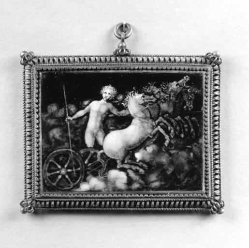 | Keywords: Master of the Mars and Venus Plaque - Apollo - Walters 44140.jpg  The nude Apollo driving his four-horse chariot to the right amidst the clouds holds in the reins in his left hand and a long staff in his right ca 1540 1550 technique painted enamel copper cm 4 2 5 7 accession number 44 140 39193 Sale Galleria Sangiorgi Rome April 21 1902 Henry Walters Baltimore 1902 by purchase Walters Art Museum Henry Walters Acquired by Henry Walters 1902 place of origin Limoges France Walters Art Museum license Limoges painted enamels in the Walters Art Museum Media contributed by the Walters Art Museum needs category review Painted enamel art in the Walters Art Museum Master of the Mars and Venus Plaque Apollo Quadriga |