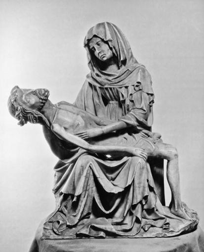 Keywords: Master of the Rimini Crucifixion - Pietà - Walters 27349.jpg Pietà is the name given to the image of Christ's mother sorrowing over her dead son The ultimate model of human piety she provided a perfect image for private meditation Northern artists often conveyed the extreme emotion of the subject through angular rigid forms especially in their depiction of Christ's dead body The Pietà as a subject was developed in northern Europe during the late 14th century This interpretation belongs to a stylistically related group of sculptures some of which were exported to Rimini Italy Beginning around 1500 the subject was adopted by Italian artists and it may well have been a sculpture such as this one that inspired Michelangelo's great Pietà in the Basilica of Saint Peter in Rome ca 1425 1435 late Medieval alabaster cm 34 3 29 1 13 4 accession number 27 349 3621 Henry Walters city Baltimore Walters Art Museum Henry Walters Acquired by Henry Walters 1913 The International Style The Arts in Europe Around 1400 The Walters Art Gallery Baltimore 1962 place of origin Westphalia Germany Walters Art Museum license Medieval art in the Walters Art Museum Master of the Rimini Crucifixion Media contributed by the Walters Art Museum needs category review Media contributed by the Walters Art Museum needs artist update |