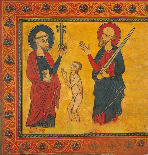 View Original:Master_of_Soriguerola_-_Supplicant_Soul_between_Saint_Peter_Saint_Paul_-_Google_Art_Project.jpg (3550x3713)